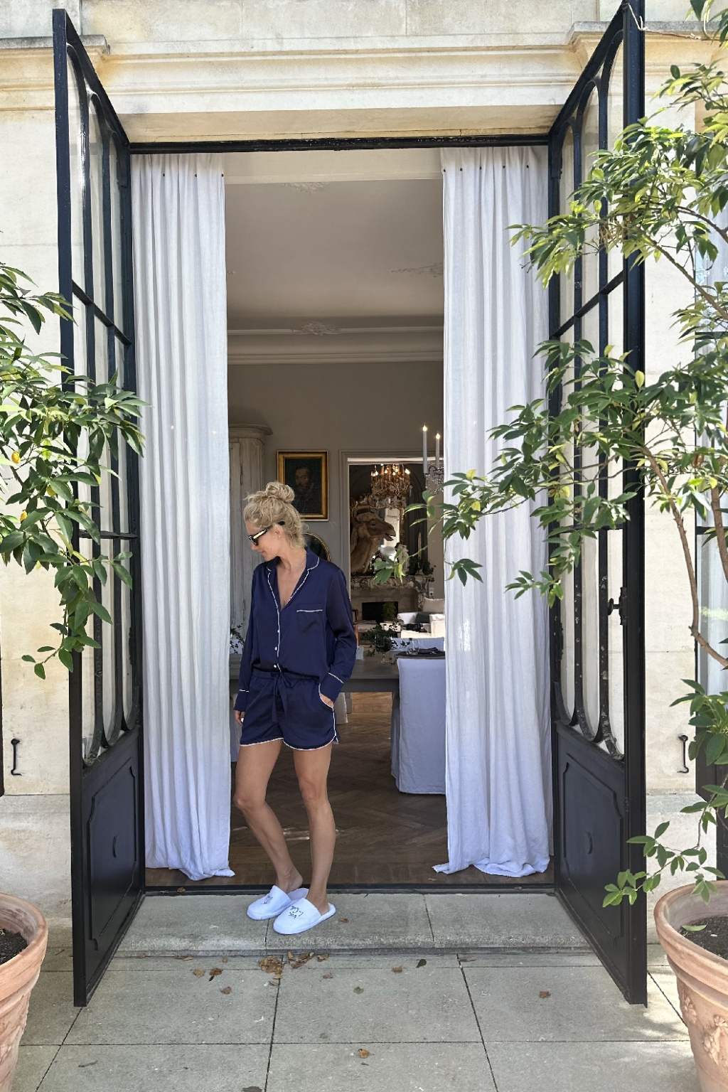 Dámské kraťasy na spaní s originálním designem v klasickém střihu se hodí do každé postele. Jsou zdobené paspulkou, mají elastický pas, pásek z tkalounu a po stranách kapsy. Vše ušito francouzským švem. Krásné, trochu odvážné a v každé situaci chic.